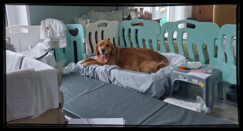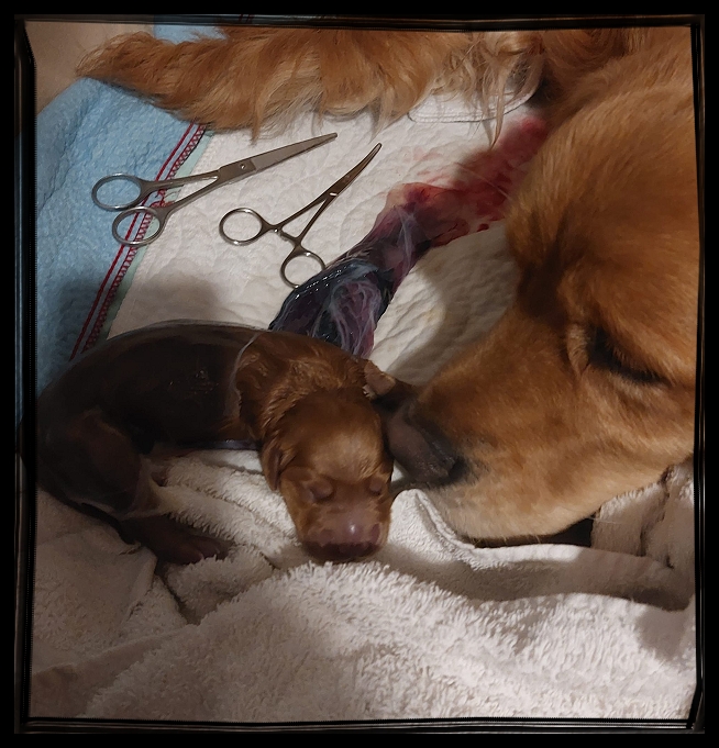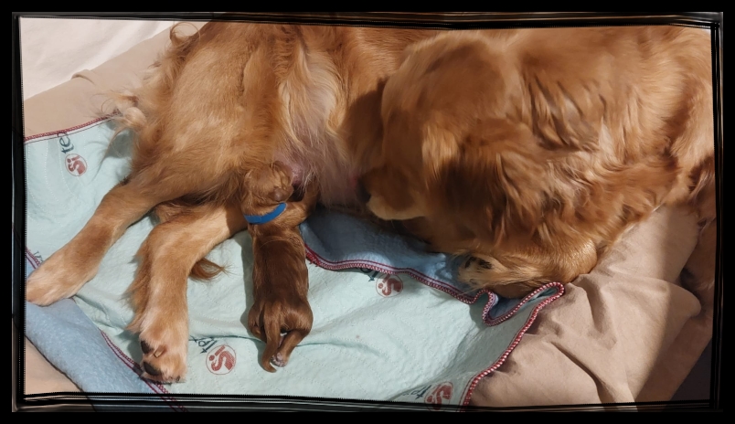 Hier 5 Stunden, bevor Yumas erster Welpe das Licht der Welt