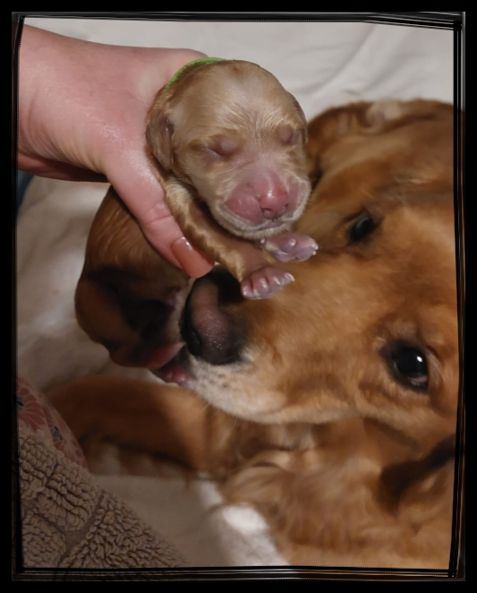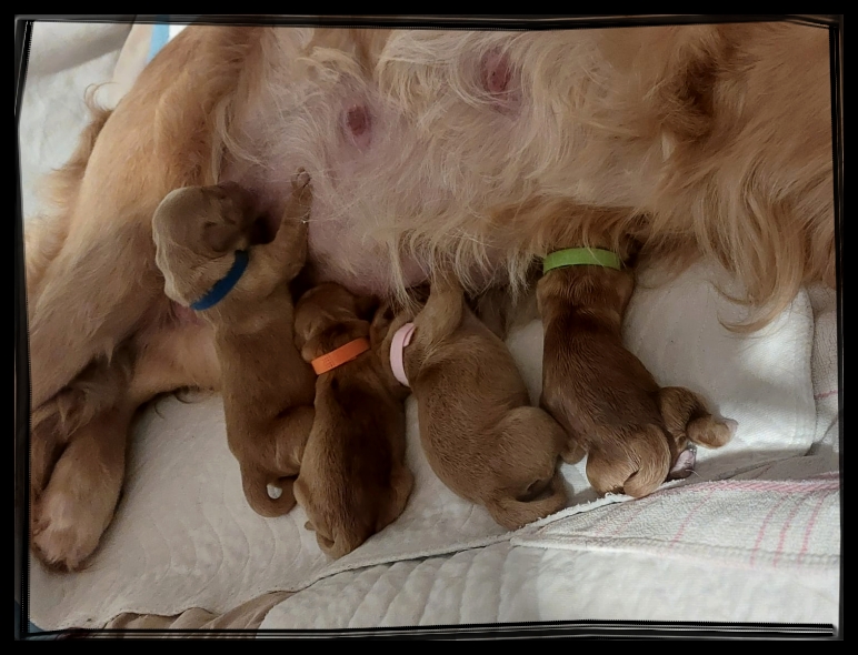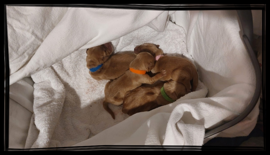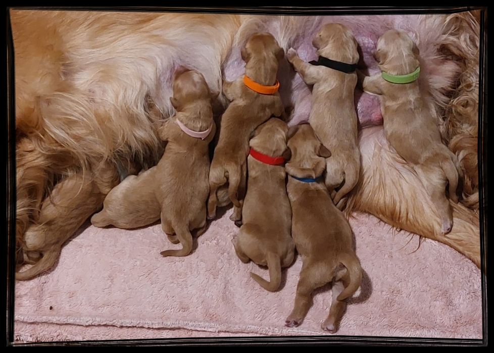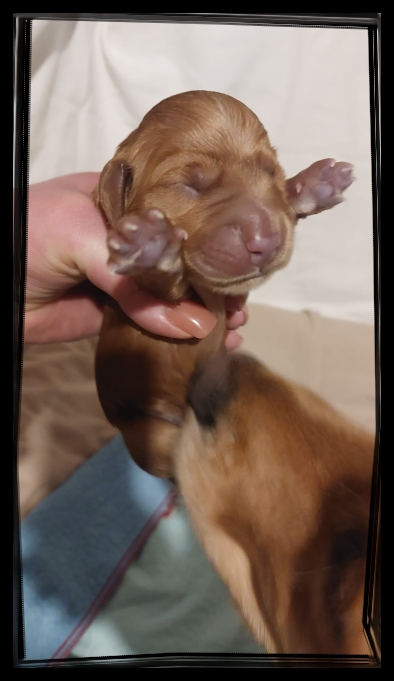 6. Welpe: Rüde, rotes Halsbändchen, 0.05 Uhr mit 460 g, golden
