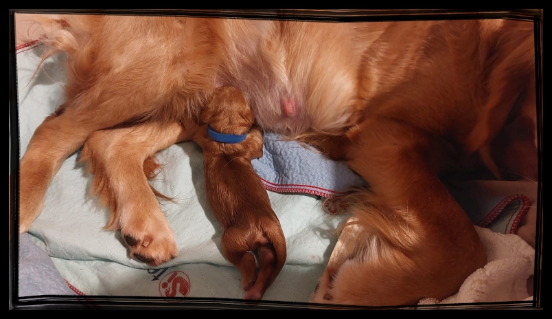 1 1. Welpe: Rüde, blaues Halsbändchen, 21.20 Uhr mit (stolzen!)
