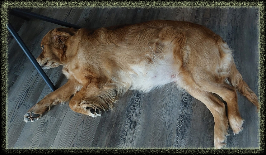 Am 46. Tag - das ist wahnsinnig früh und ich konnte es selbst erst nicht glauben, habe ich erste Welpenbewegungen fühlen können...! So früh war es noch nie zu spüren! Das ist immer ein gaanz besoonderer Zeitpunkt! Die Waage sagt 37,7, das bedeutet eine Zunahme von 6 Kilo seit ihrer Hochzeit! Das ist schon ganz schön... Allmählich wird alles schwerfälliger... das Laufen, das Aufstehen....