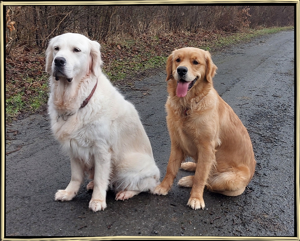 Unsere täglichen Spaziergänge mit den Zweien genießen wir sehr... Noch hat Yuma Josies Endgewicht und Größe nicht erreicht ...