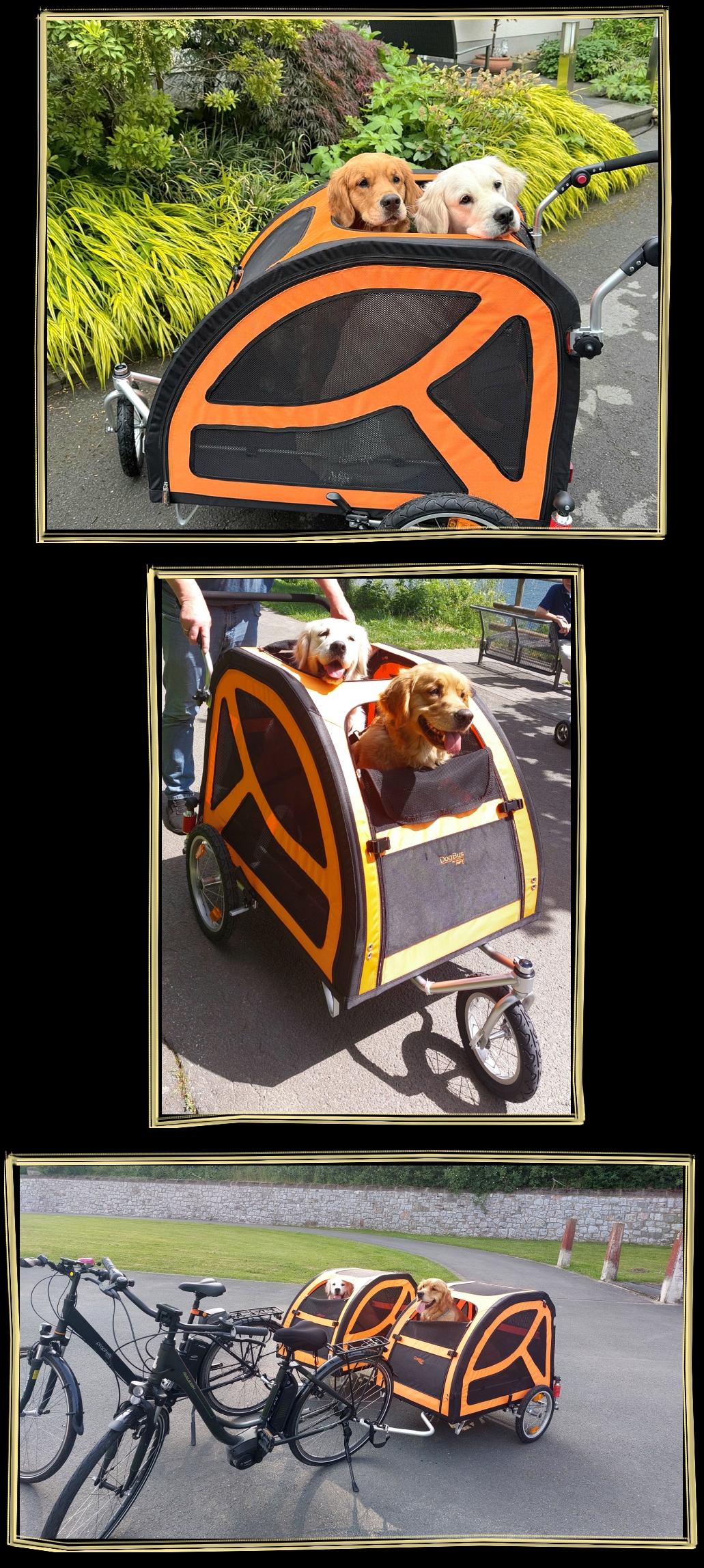 Bei uns sind unsere Hunde vollwertige Familienmitglieder, die überall hin mitkommen ;)) So haben wir sie hier Stepp by Stepp an die Fahrradanhänger gewöhnt...