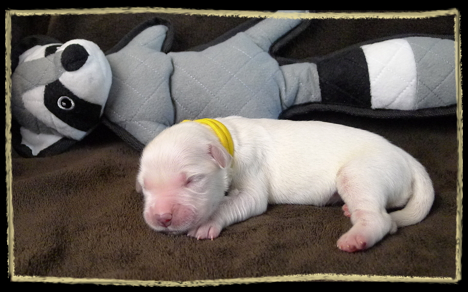 Noch nicht alle unserer kleinen Wonneproppen haben schon Namen. Bisher waren die Familien für die Buben entscheidungsfreudiger, als die der Mädchen ;). Manche Welpenfamilien überlegen noch. Wir haben unseren Welpenfamilien die Freiheit eingeräumt, uns ihren künftigen Rufnamen zu verraten, und werden ihnen eine Freunde bereiten, in dem wir diesen Namen ebenfalls in den den Stammbaum nehmen! Wir haben bis jetzt einen Heine, einen Karlo, einen Dino und einen Ares ;), und alles sind natürlich unsere Kind of Magic Angels!