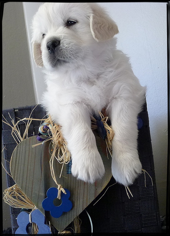 7. Woche Oh Gott, oh Gott, die Zeit arbeitet gegen uns! Diese Woche werden meine kleinen Zuckerbärchen schon 7 Wochen alt und mit Grauen denke ich an den immer näher rückenden Tag, an dem sie ausziehen werden! Ich genieße es, mit ihnen zu spielen und ihnen die Ohren ganz matschig zu lecken... ! Sie sind wirklich genauso verschmust wie ich! Manchmal muss ich einen übermütigen Raufbold in seine Schranken weisen, aber, kein Problem, dazu bin ich ja da als Mama ;), das muss auch mal sein! Frauchen sagt, ich könne ruhig mal härter durchgreifen. Hm, bringe ich gar nichts über's Herz ;) Und sie muss das grad sagen, sie betüddelt die Babys doch erst recht nur nach Strich und Faden!!! Mir geht es übrigens auch sehr gut! Mama sein ist schon sehr aufregend, aber, ich glaube, ich liebe es! Mittlerweile hängt und schwabbelt die Milchtheke auch nicht mehr so runter, sondern hat sich schön zurückgebildet, das war ja sooo unschick ;o) Ganz oft läuft die Geräusche CD voll laut, um meine Babys an Kindergeschrei, Klaller, Sirenen und alle möglichen anderen Geräusche zu gewöhnen. Die Blechdosen scheppern ganz laut, wenn meine Kleinen sie an dem Band hinter sich her ziehen, und auch das erste Autofahren hat hervorragend ohne Brechreiz ;)) geklappt ;). Frauchen fährt immer bis alle schlafen.