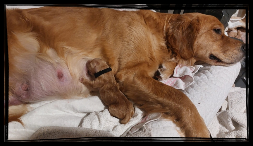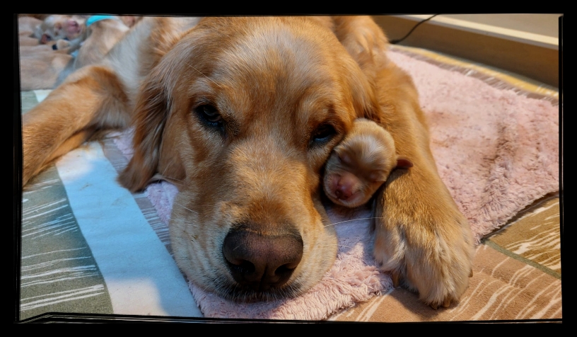 Hier 5 Stunden, bevor Yumas erster Welpe das Licht der Welt