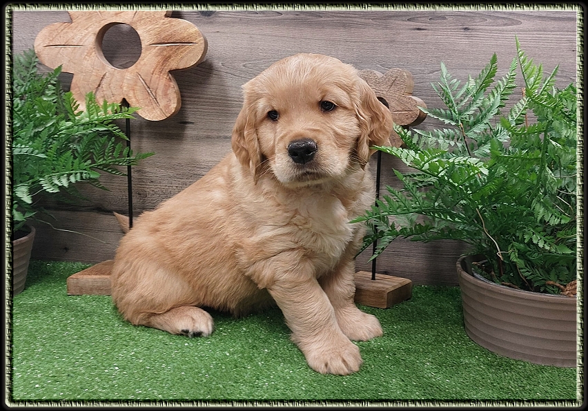 6. Welpe: Rüde, rotes Halsbändchen, 0.05 Uhr mit 460 g, golden