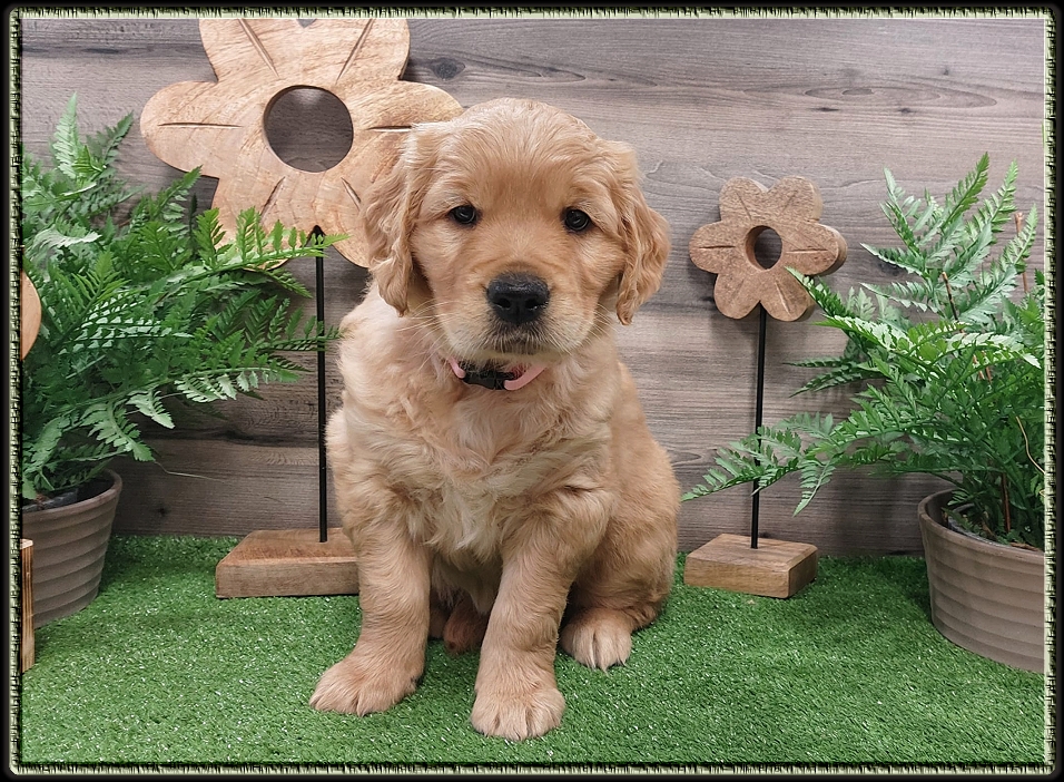 2. Welpe: Hündin, rosa Halsbändchen, 22.30 Uhr mit 430 g, golden