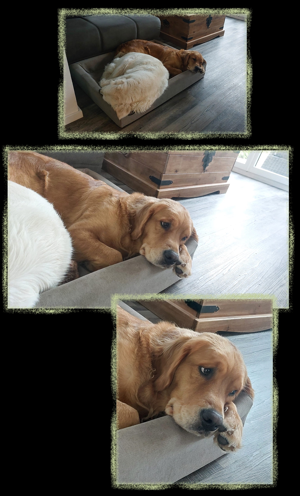 ... den Auslauf haben wir jetzt erweitert und gewöhnen Yuma daran. Regelmäßig am Tag legen wir uns zusammen in das Körbchen und streicheln ihren Bauch... sie genießt es! Die Temperaturkontrolle ist auch kein Problem für sie. Wir müssen den Temperaturabfall um mindestens 1 Grad notieren, denn dann beginnt binnen der nächsten 24 Stunden die Eröffnungsphase der Geburt....