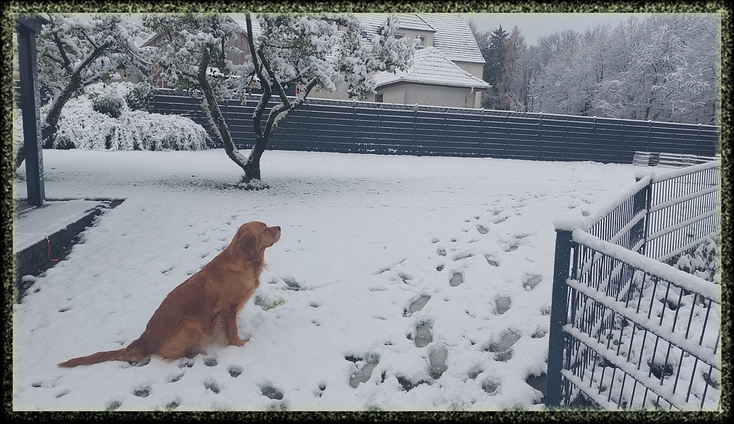 41. Trächtigkeitstag Der erste Schnee bei uns.... Was sie wohl denkt?!