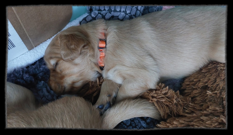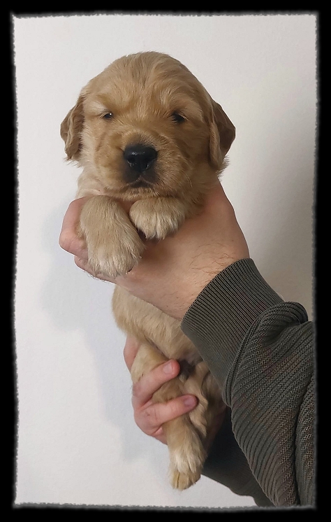 Ihr durchschnittliches Körpergewicht beträgt mit 4 Wochen schon 2,7 Kilo! Die regelmäßige Kürzung der Krallen ist unerlässlich, u. a., um Yumas Zitzen zu schützen. Zum zweiten Mal tauschen wir bereits die zu klein gewordenen Halsbändchen aus... ;) Im Alter von fast 4 Wochen haben sie auch schon das eingeweichte Premium Trockenfutter