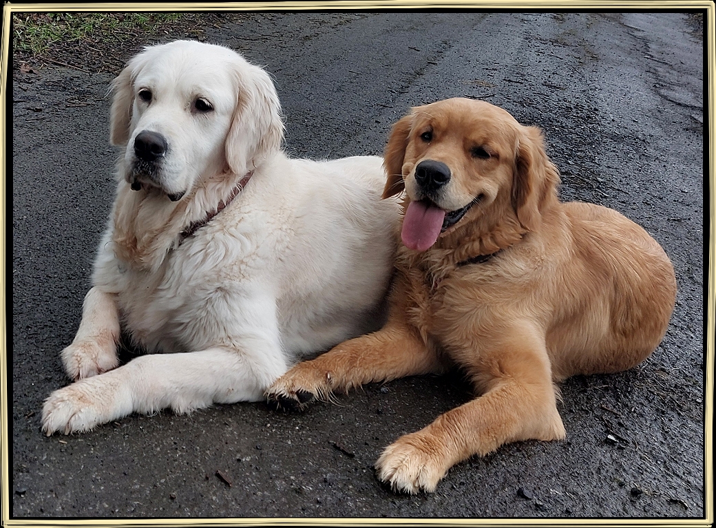 Unsere täglichen Spaziergänge mit den Zweien genießen wir sehr... Noch hat Yuma Josies Endgewicht und Größe nicht erreicht ...
