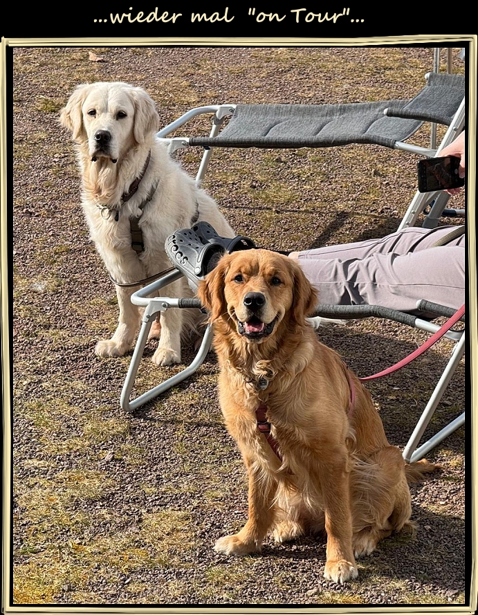 Die meisten Fotos machen wir wohl tatsächlich, wenn wir mit unserem Wohnmobil unterwegs sind... Also... nicht, dass es den Anschein erweckt, unsere Hunde seien ihr Leben lang draußen immer nur in einem Hundeauslauf...: Wir zäunen vor dem Wohnmobil immer ein Stück ein, damit die Zwei sich frei bewegen können, statt angeleint sein zu müssen